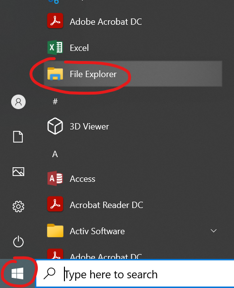 1. Click on the Start button, click on File Explorer.